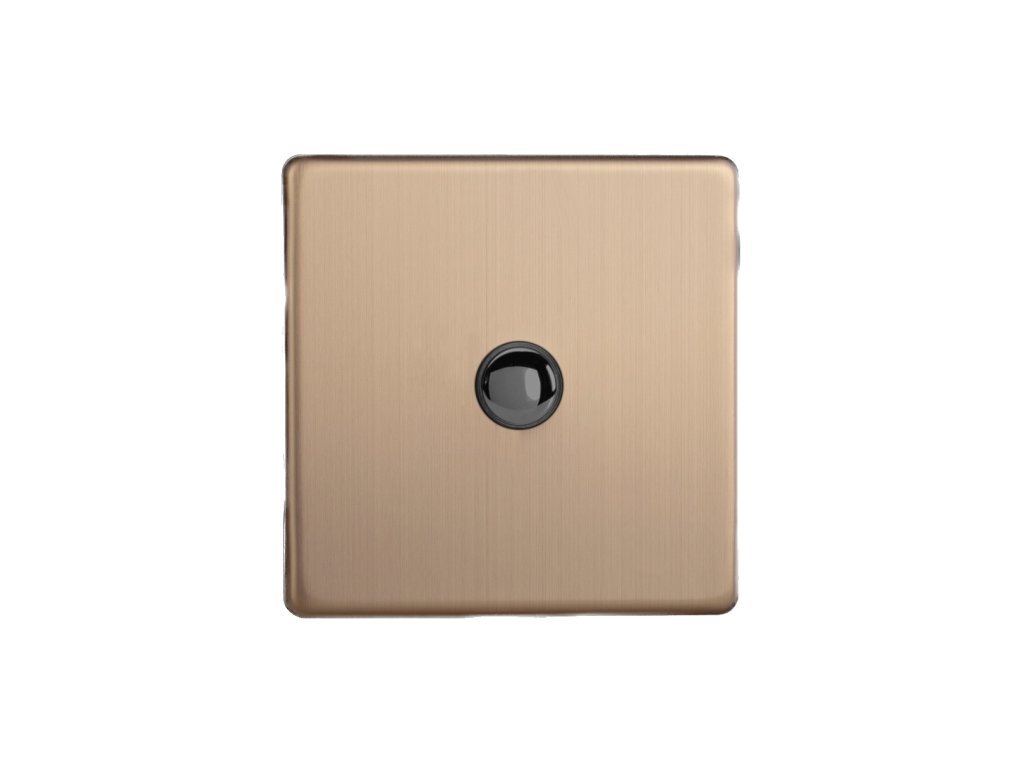 Tlačítkový vypínač IMPULSE - 1-modulový jednosměrný (č.1) 6A 1-pólový momentový BEZŠROUBKOVÉ - kartáčovaná měď / černé (lesklé) iridium