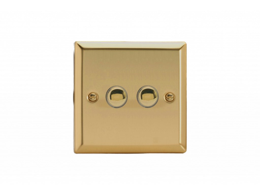 Tlačítkový vypínač IMPULSE - 2-modulový jednosměrný (č.1) 6A 1-pólový momentový KLASICKÉ - leštěná mosaz / mosazná tlačítka