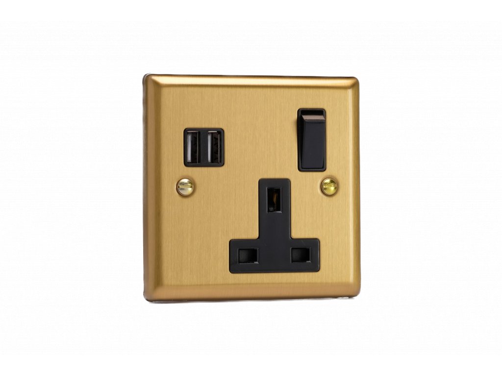 Síová zásuvka MAINS SOCKET - 1-modulový 13A 1-pólový britská zásuvka KLASICKÉ - kartáèovaná mosaz / èerný