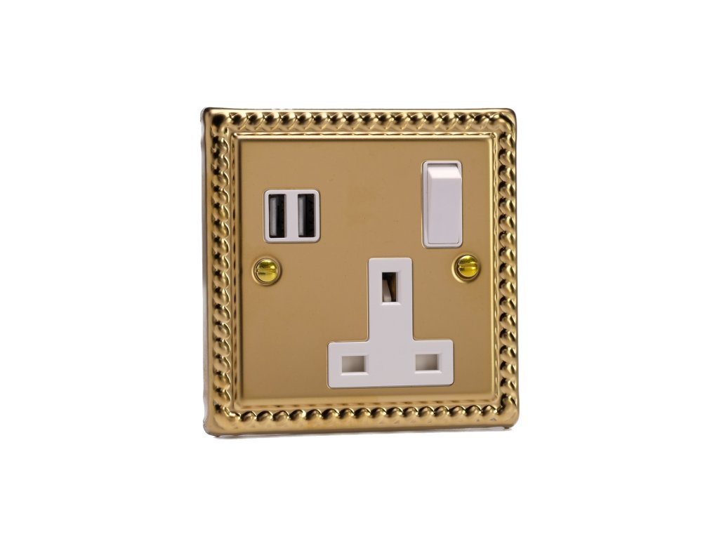 Síová zásuvka MAINS SOCKET - 1-modulový 13A 1-pólový britská zásuvka KLASICKÉ - letìná mosaz / bílá