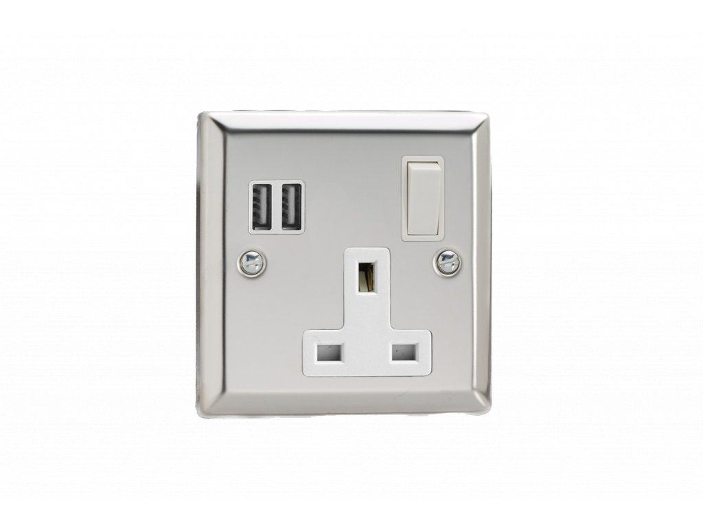 Síová zásuvka MAINS SOCKET - 1-modulový 13A 1-pólový britská zásuvka KLASICKÉ - letìný chrom / bílá