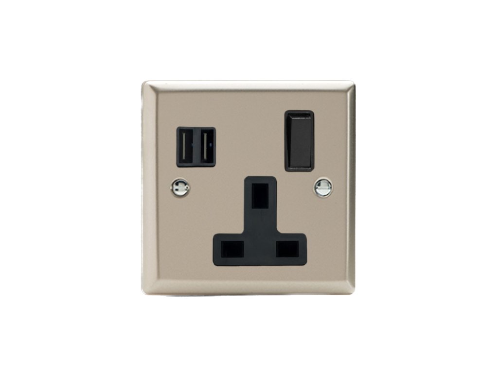 Síová zásuvka MAINS SOCKET - 1-modulový 13A 1-pólový britská zásuvka KLASICKÉ - satén / èerný