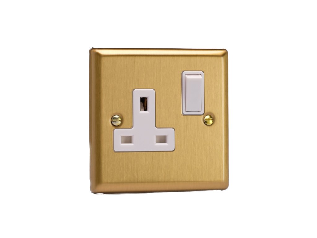 Síová zásuvka MAINS SOCKET - 1-modulový 13A 2-pólový britská zásuvka KLASICKÉ - kartáèovaná mosaz / bílá