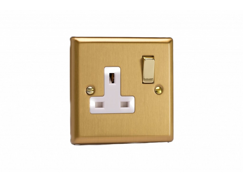 Síová zásuvka MAINS SOCKET - 1-modulový 13A 2-pólový britská zásuvka KLASICKÉ - kartáèovaná mosaz / bílá