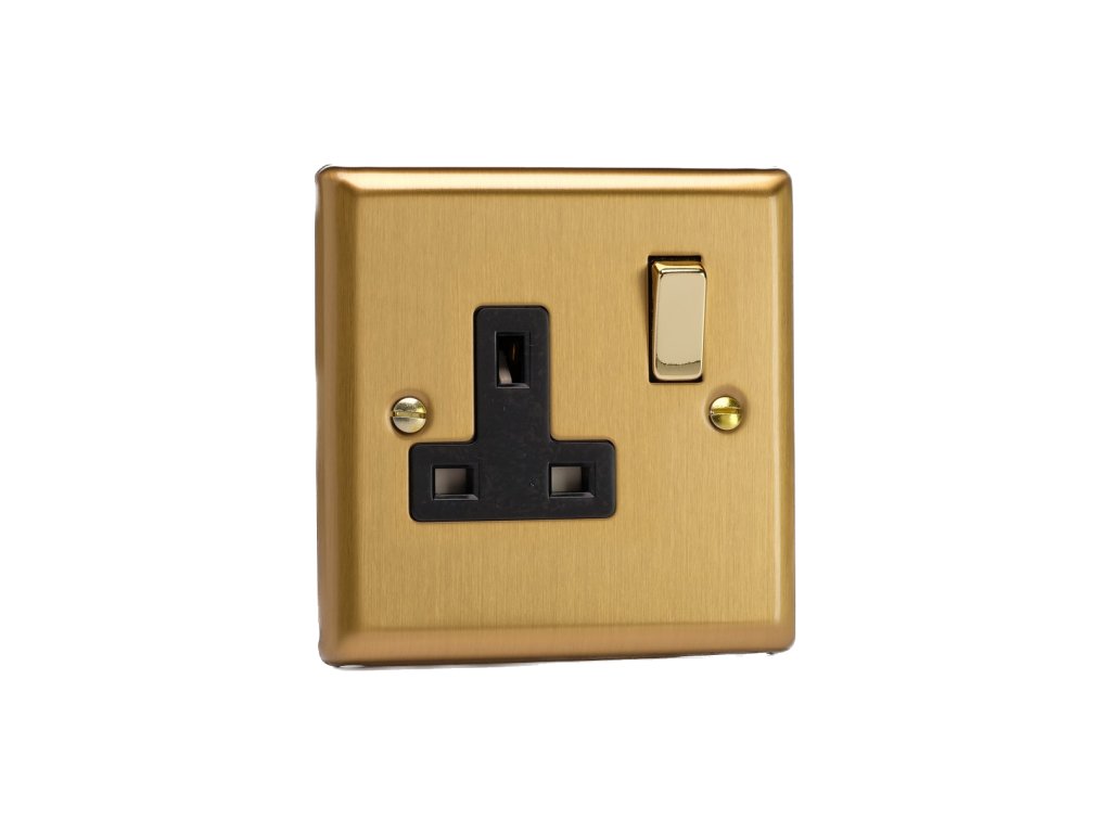 Síová zásuvka MAINS SOCKET - 1-modulový 13A 2-pólový britská zásuvka KLASICKÉ - kartáèovaná mosaz / èerná