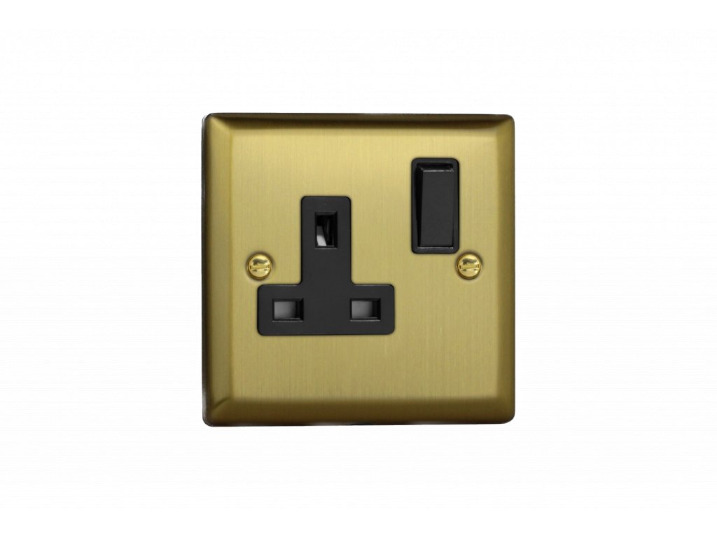 Síová zásuvka MAINS SOCKET - 1-modulový 13A 2-pólový britská zásuvka KLASICKÉ - kartáèovaná mosaz / èerný