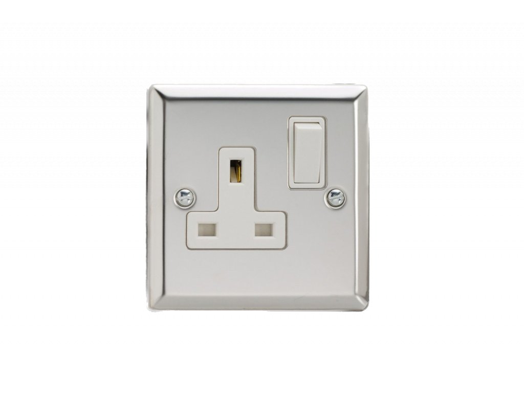 Síová zásuvka MAINS SOCKET - 1-modulový 13A 2-pólový britská zásuvka KLASICKÉ - letìný chrom / bílá