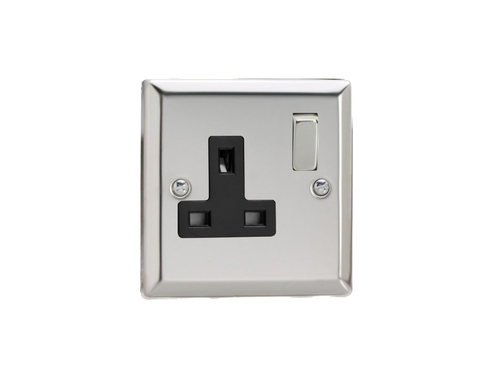 Síová zásuvka MAINS SOCKET - 1-modulový 13A 2-pólový britská zásuvka KLASICKÉ - letìný chrom / èerná