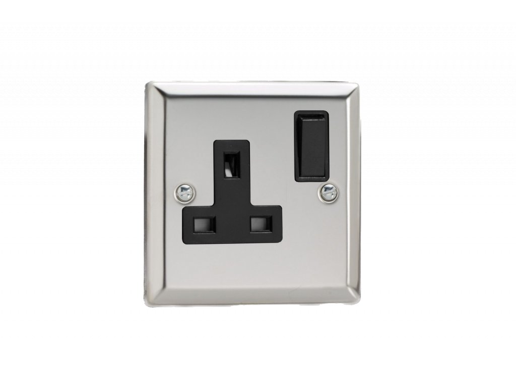 Síová zásuvka MAINS SOCKET - 1-modulový 13A 2-pólový britská zásuvka KLASICKÉ - letìný chrom / èerný