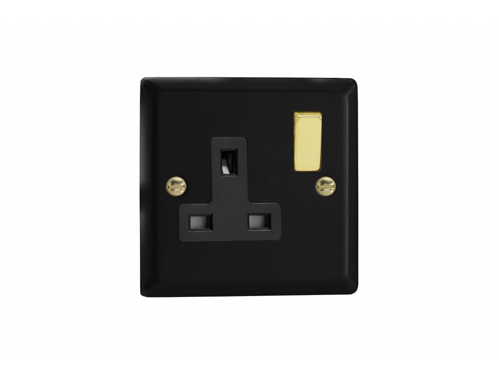 Síová zásuvka MAINS SOCKET - 1-modulový 13A 2-pólový britská zásuvka KLASICKÉ - matnì èerná / letìná mosaz