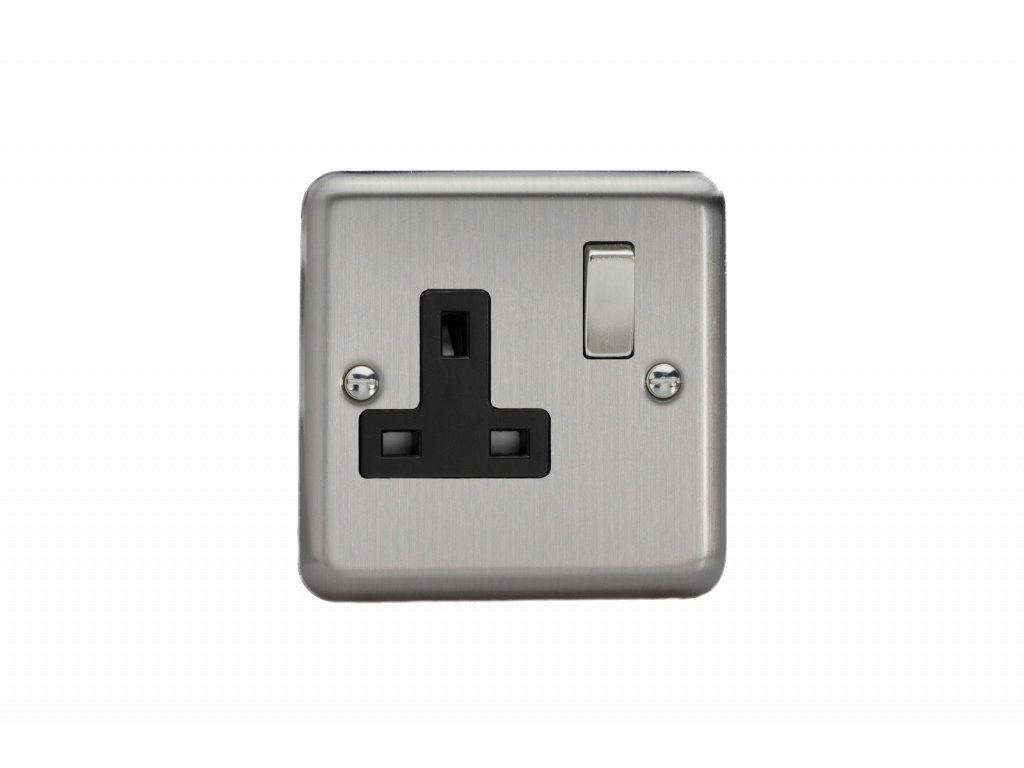 Síová zásuvka MAINS SOCKET - 1-modulový 13A 2-pólový britská zásuvka KLASICKÉ - matnì chromová / èerná