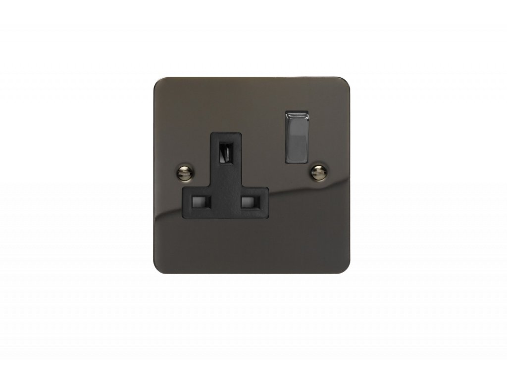 Síová zásuvka MAINS SOCKET - 1-modulový 13A 2-pólový britská zásuvka ULTRAPLOCHÉ - èerné (lesklé) iridium / èerné (lesklé) iridium