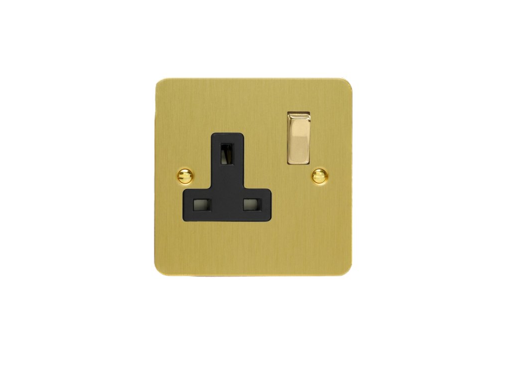Síová zásuvka MAINS SOCKET - 1-modulový 13A 2-pólový britská zásuvka ULTRAPLOCHÉ - kartáèovaná mosaz / èerná