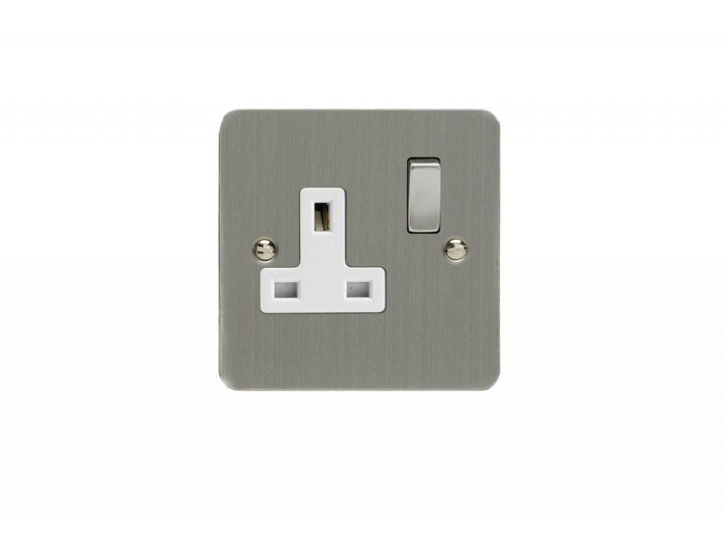 Síová zásuvka MAINS SOCKET - 1-modulový 13A 2-pólový britská zásuvka ULTRAPLOCHÉ - kartáèovaná ocel / bílá