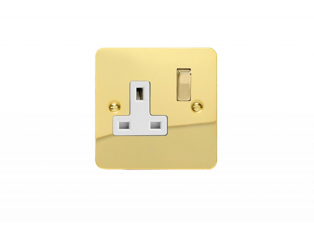 Síová zásuvka MAINS SOCKET - 1-modulový 13A 2-pólový britská zásuvka ULTRAPLOCHÉ - letìná mosaz / bílá