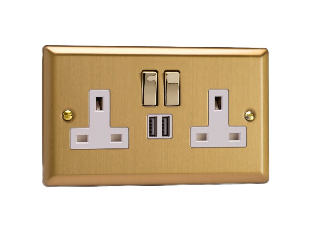 Síová zásuvka MAINS SOCKET - 2-modulový 13A 1-pólový britská zásuvka KLASICKÉ - kartáèovaná mosaz / bílá