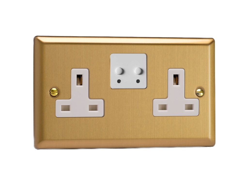 Síová zásuvka MAINS SOCKET - 2-modulový 13A 1-pólový britská zásuvka KLASICKÉ - kartáèovaná mosaz / bílá
