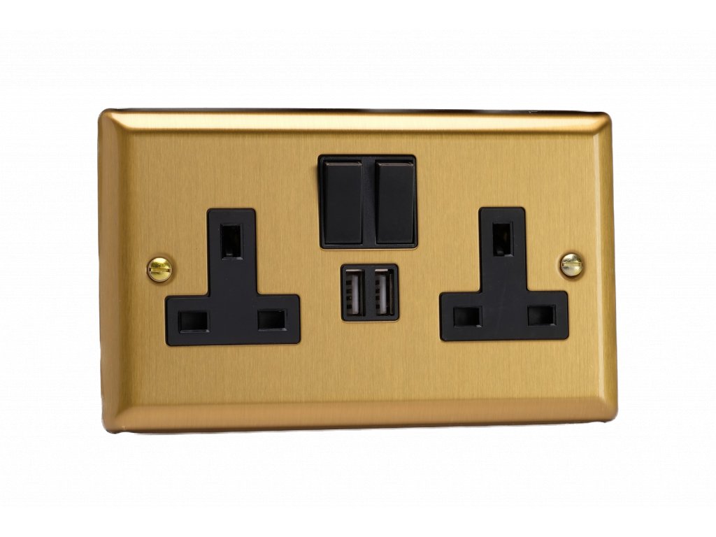 Síová zásuvka MAINS SOCKET - 2-modulový 13A 1-pólový britská zásuvka KLASICKÉ - kartáèovaná mosaz / èerný