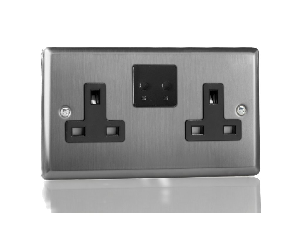 Síová zásuvka MAINS SOCKET - 2-modulový 13A 1-pólový britská zásuvka KLASICKÉ - kartáèovaná ocel / èerný