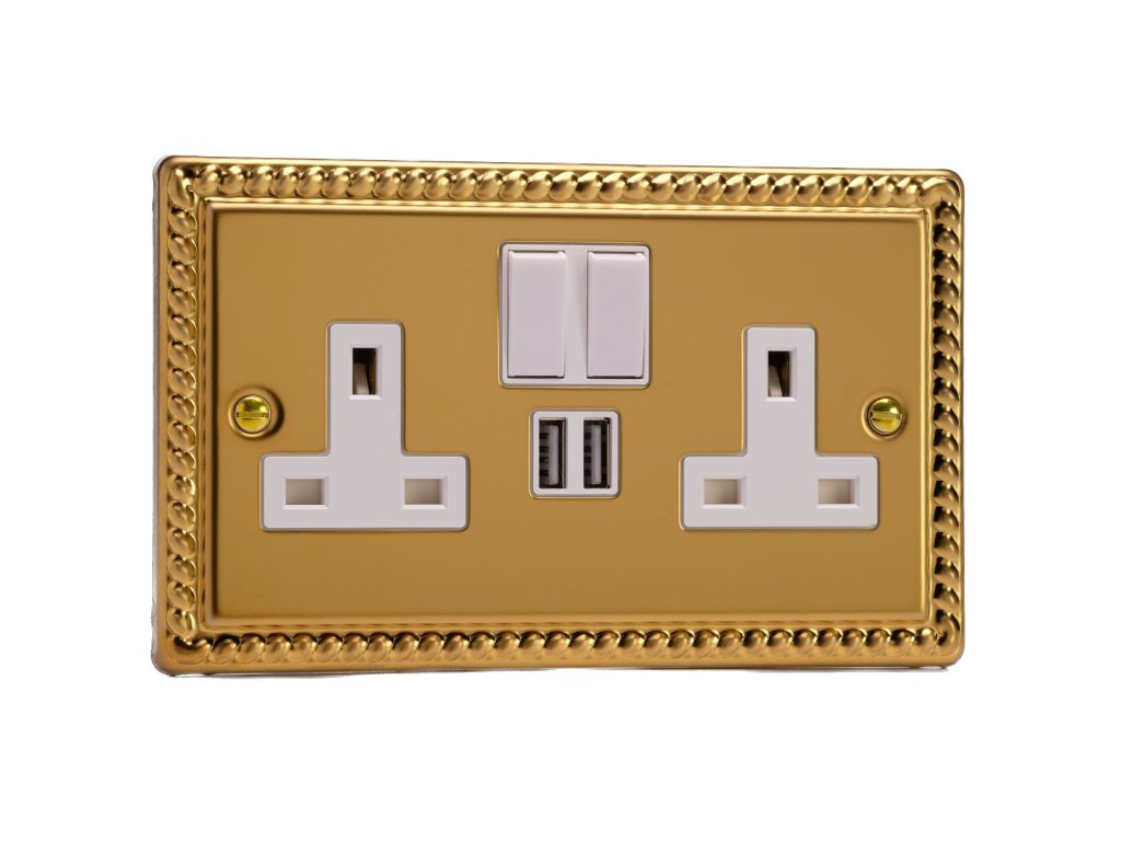 Síová zásuvka MAINS SOCKET - 2-modulový 13A 1-pólový britská zásuvka KLASICKÉ - letìná mosaz / bílá
