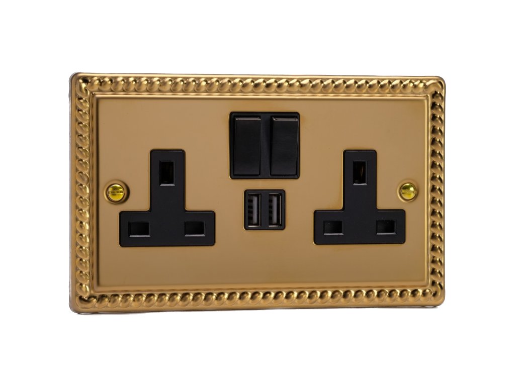 Síová zásuvka MAINS SOCKET - 2-modulový 13A 1-pólový britská zásuvka KLASICKÉ - letìná mosaz / èerný