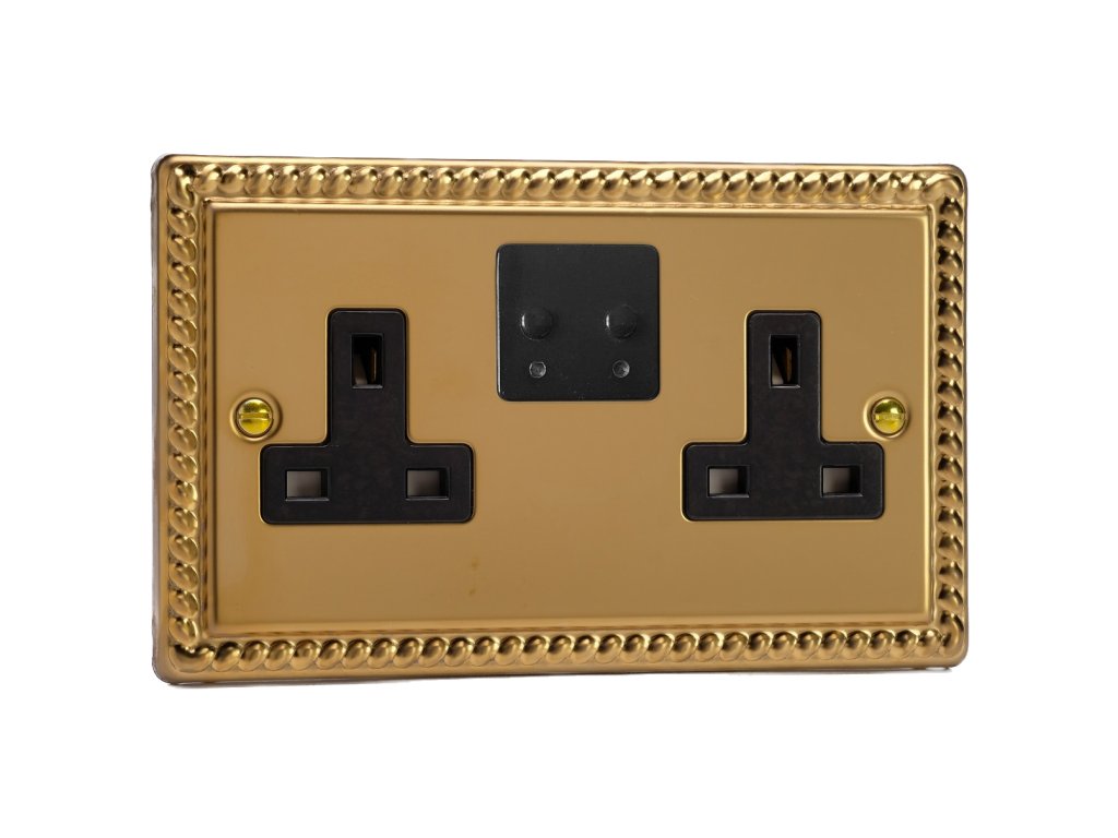 Síová zásuvka MAINS SOCKET - 2-modulový 13A 1-pólový britská zásuvka KLASICKÉ - letìná mosaz / èerný