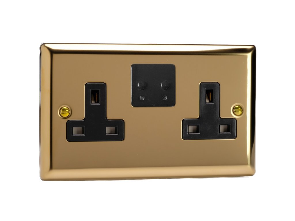 Síová zásuvka MAINS SOCKET - 2-modulový 13A 1-pólový britská zásuvka KLASICKÉ - letìná mosaz / èerný