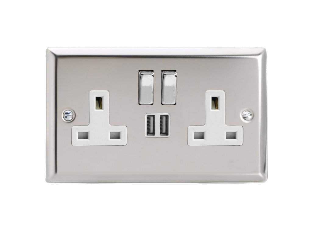 Síová zásuvka MAINS SOCKET - 2-modulový 13A 1-pólový britská zásuvka KLASICKÉ - letìný chrom / bílá