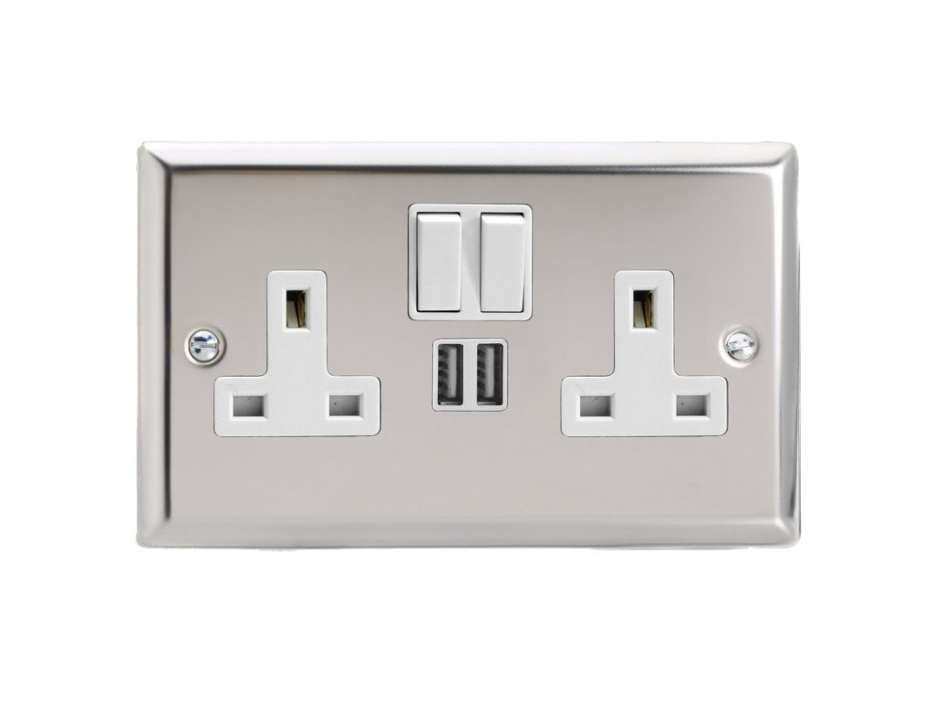 Síová zásuvka MAINS SOCKET - 2-modulový 13A 1-pólový britská zásuvka KLASICKÉ - letìný chrom / bílá
