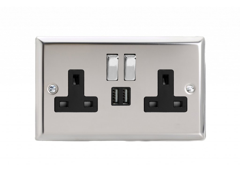 Síová zásuvka MAINS SOCKET - 2-modulový 13A 1-pólový britská zásuvka KLASICKÉ - letìný chrom / èerná