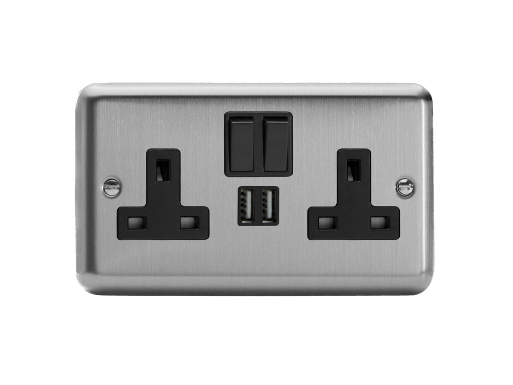 Síová zásuvka MAINS SOCKET - 2-modulový 13A 1-pólový britská zásuvka KLASICKÉ - matnì chromová / èerný