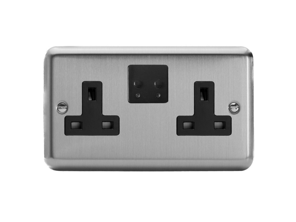 Síová zásuvka MAINS SOCKET - 2-modulový 13A 1-pólový britská zásuvka KLASICKÉ - matnì chromová / èerný