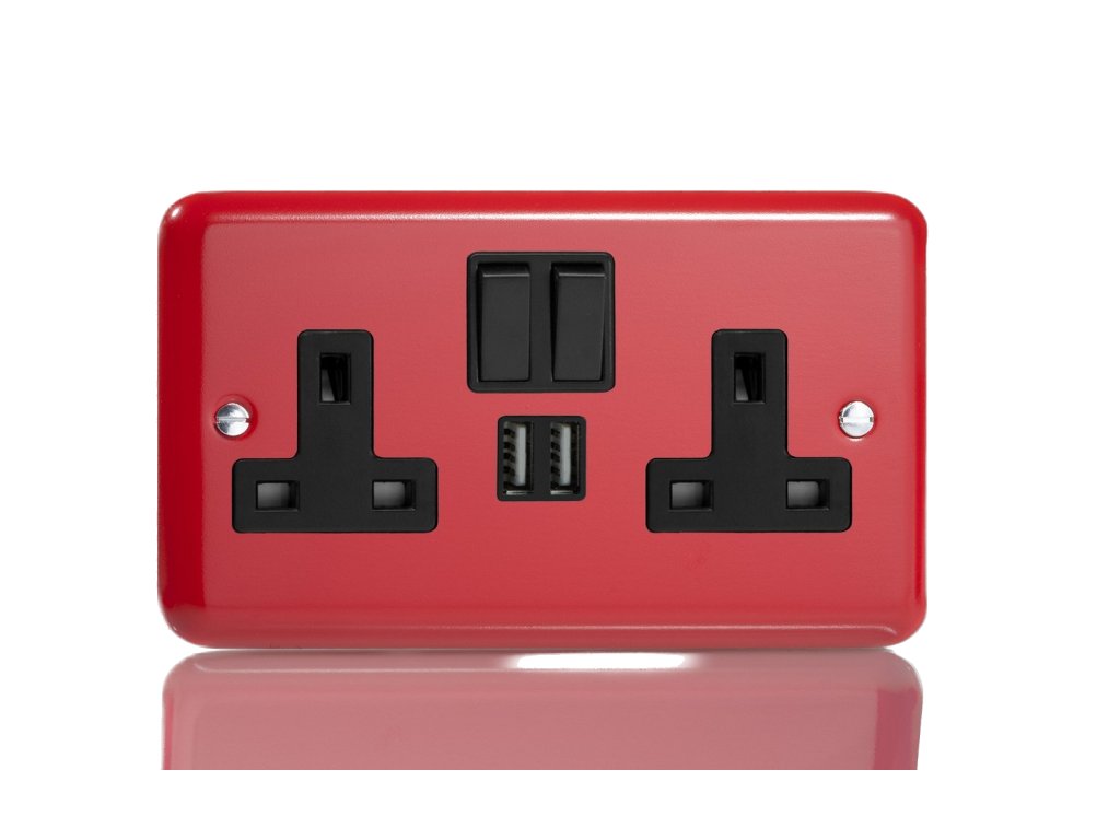 Síová zásuvka MAINS SOCKET - 2-modulový 13A 1-pólový britská zásuvka KLASICKÉ - potovní èervená / èerný