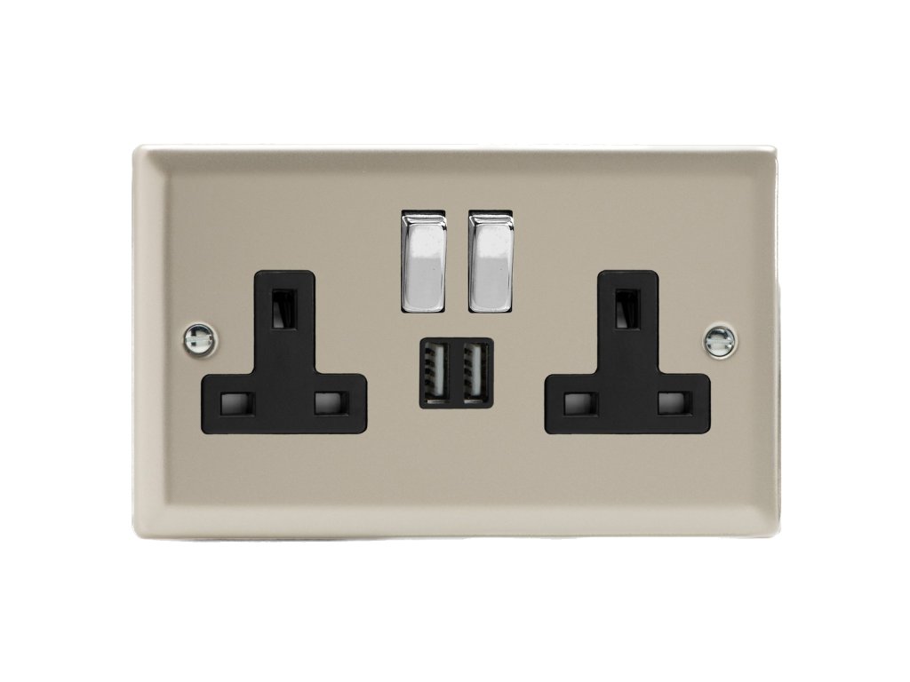 Síová zásuvka MAINS SOCKET - 2-modulový 13A 1-pólový britská zásuvka KLASICKÉ - satén / èerná