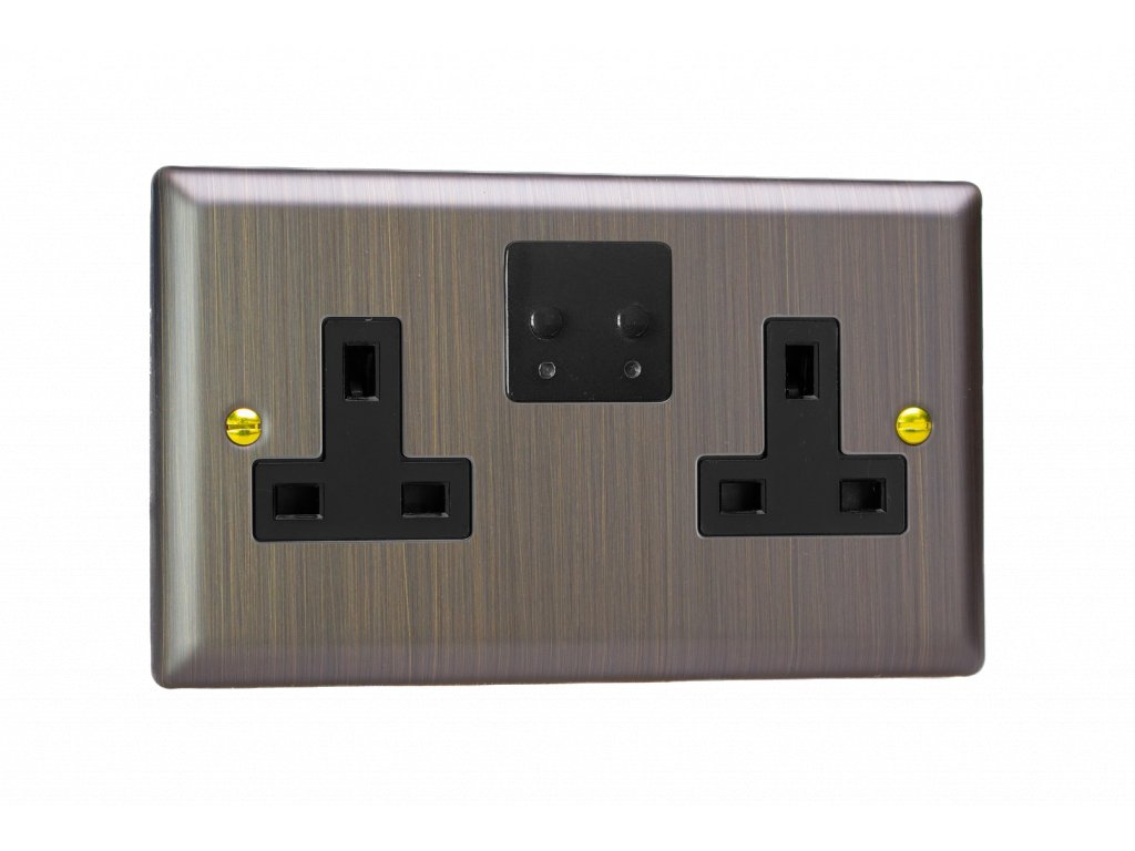 Síová zásuvka MAINS SOCKET - 2-modulový 13A 1-pólový britská zásuvka KLASICKÉ - staroitná mosaz / èerný