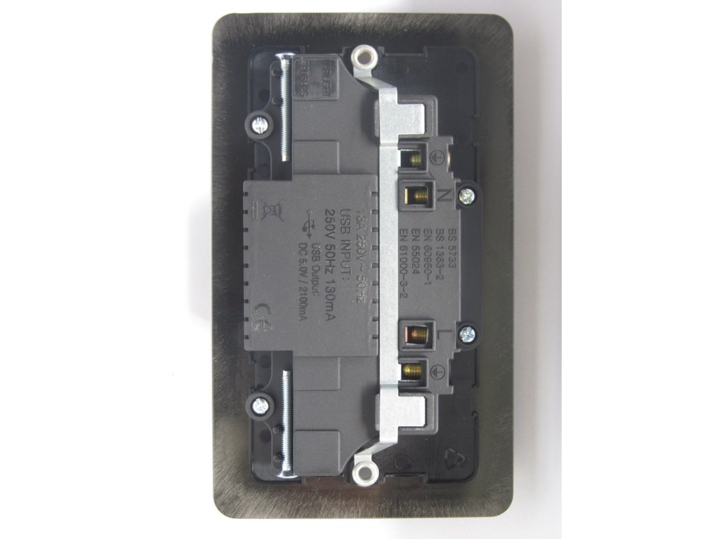 Síťová zásuvka MAINS SOCKET - 2-modulový 13A 1-pólový britská zásuvka ULTRAPLOCHÉ - černé (lesklé) iridium / černé (lesklé) iridium