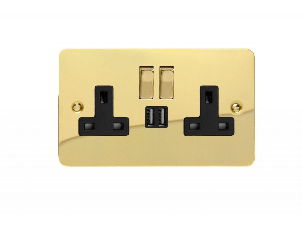 Síová zásuvka MAINS SOCKET - 2-modulový 13A 1-pólový britská zásuvka ULTRAPLOCHÉ - letìná mosaz / èerná