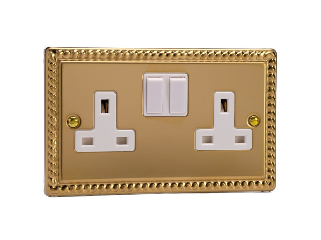 Síová zásuvka MAINS SOCKET - 2-modulový 13A 2-pólový britská zásuvka KLASICKÉ - letìná mosaz / bílá