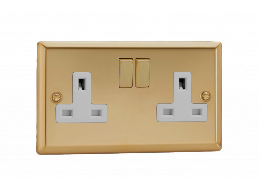 Síová zásuvka MAINS SOCKET - 2-modulový 13A 2-pólový britská zásuvka KLASICKÉ - letìná mosaz / bílá