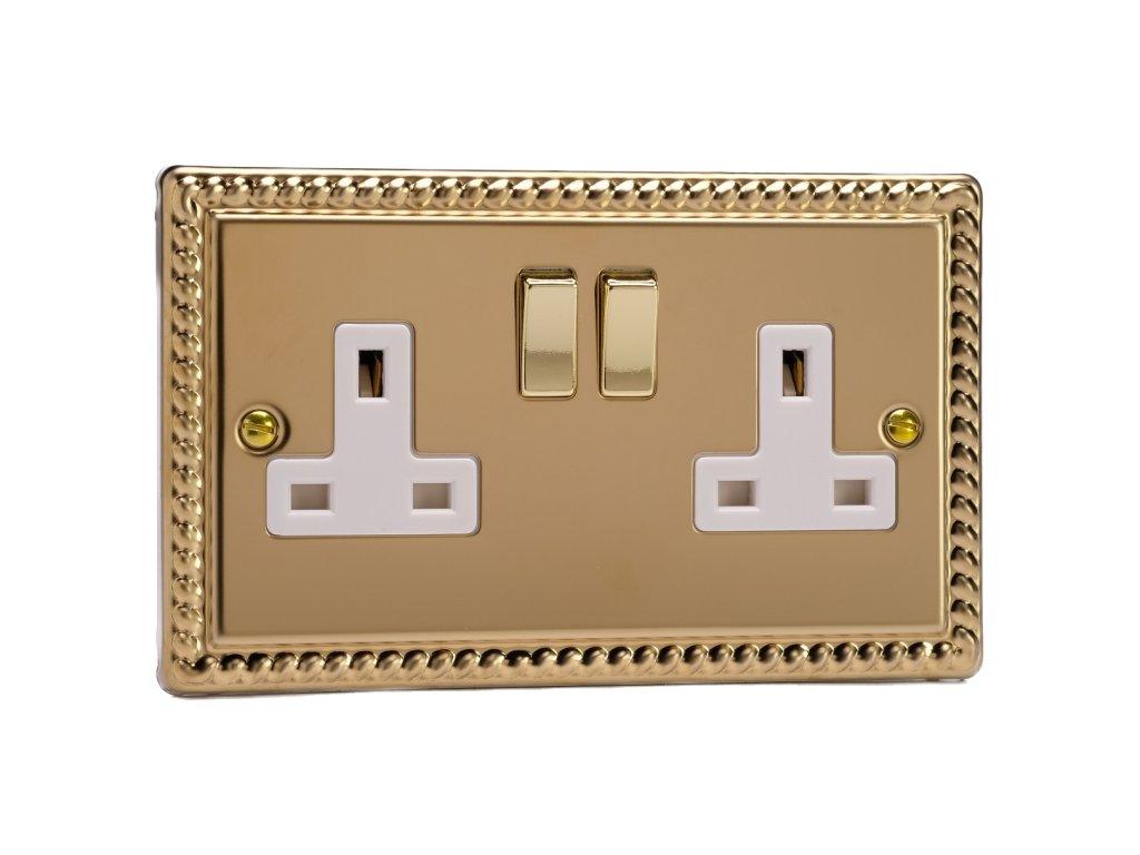 Síová zásuvka MAINS SOCKET - 2-modulový 13A 2-pólový britská zásuvka KLASICKÉ - letìná mosaz / bílá
