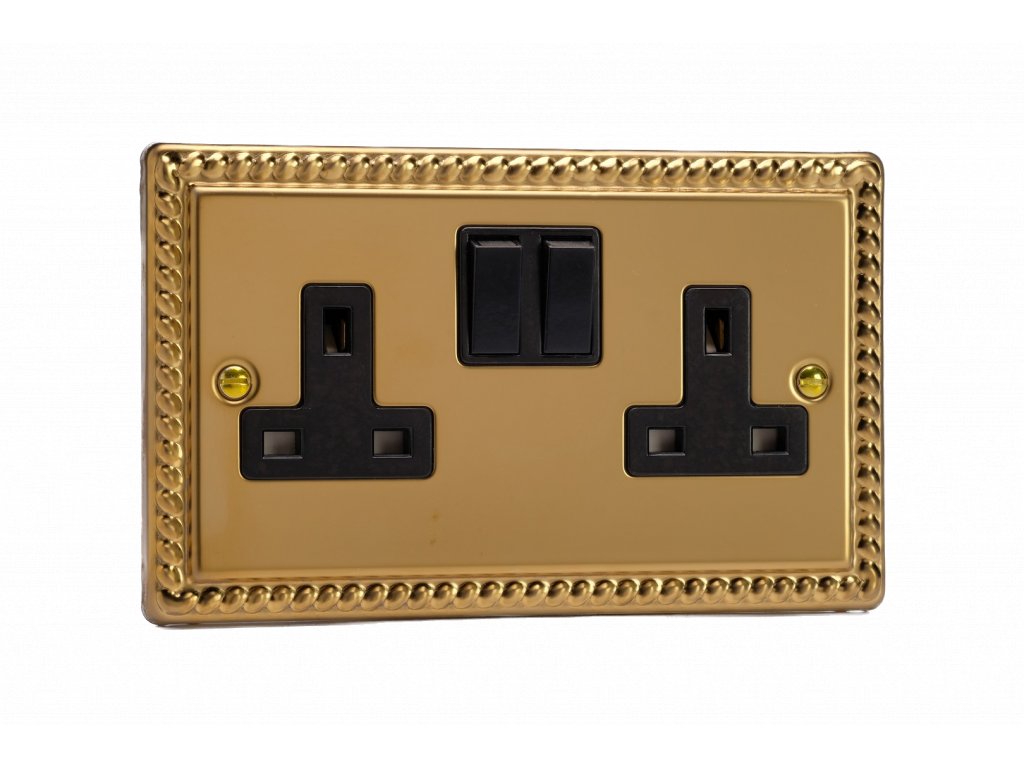 Síová zásuvka MAINS SOCKET - 2-modulový 13A 2-pólový britská zásuvka KLASICKÉ - letìná mosaz / èerný