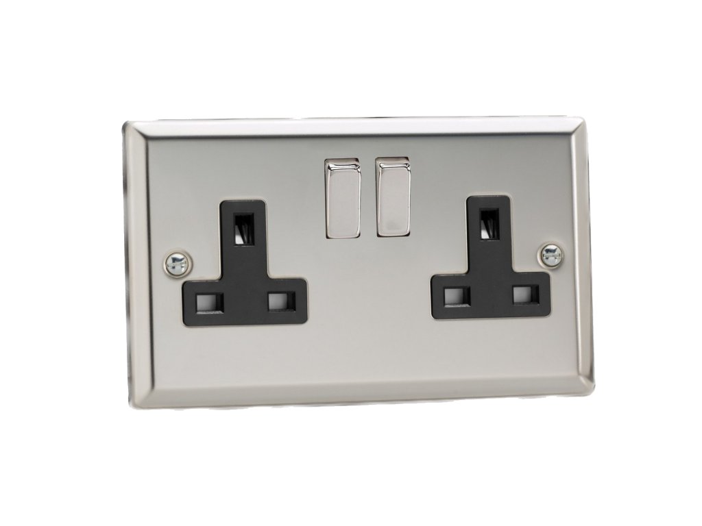 Síová zásuvka MAINS SOCKET - 2-modulový 13A 2-pólový britská zásuvka KLASICKÉ - letìný chrom / èerná