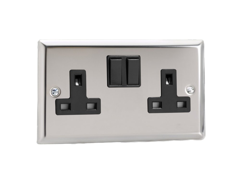 Síová zásuvka MAINS SOCKET - 2-modulový 13A 2-pólový britská zásuvka KLASICKÉ - letìný chrom / èerný