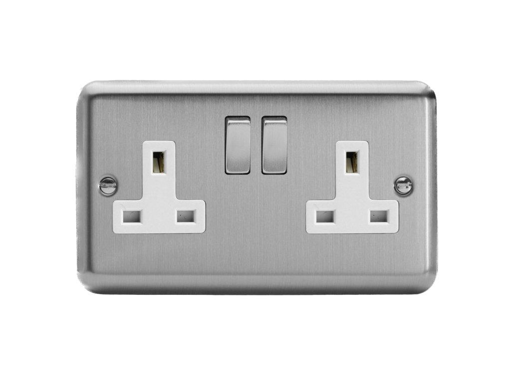Síová zásuvka MAINS SOCKET - 2-modulový 13A 2-pólový britská zásuvka KLASICKÉ - matnì chromová / bílá