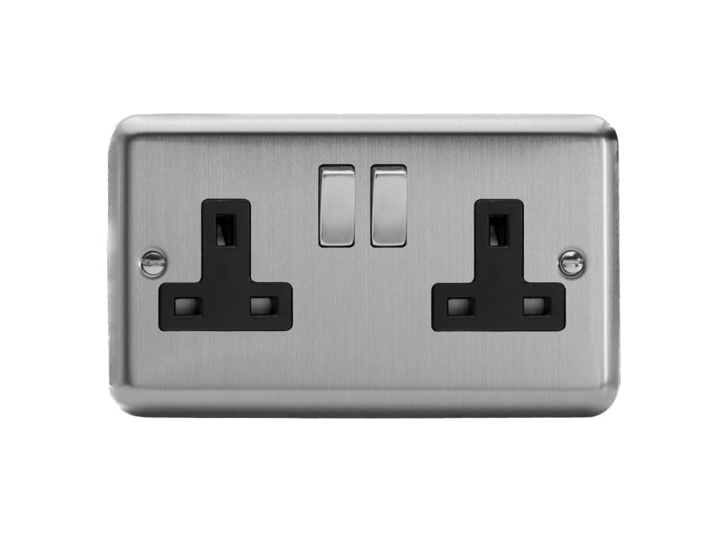 Síová zásuvka MAINS SOCKET - 2-modulový 13A 2-pólový britská zásuvka KLASICKÉ - matnì chromová / èerná