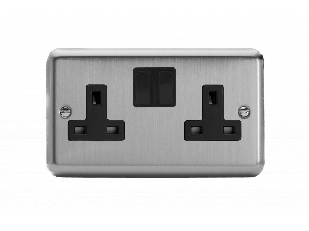 Síová zásuvka MAINS SOCKET - 2-modulový 13A 2-pólový britská zásuvka KLASICKÉ - matnì chromová / èerný