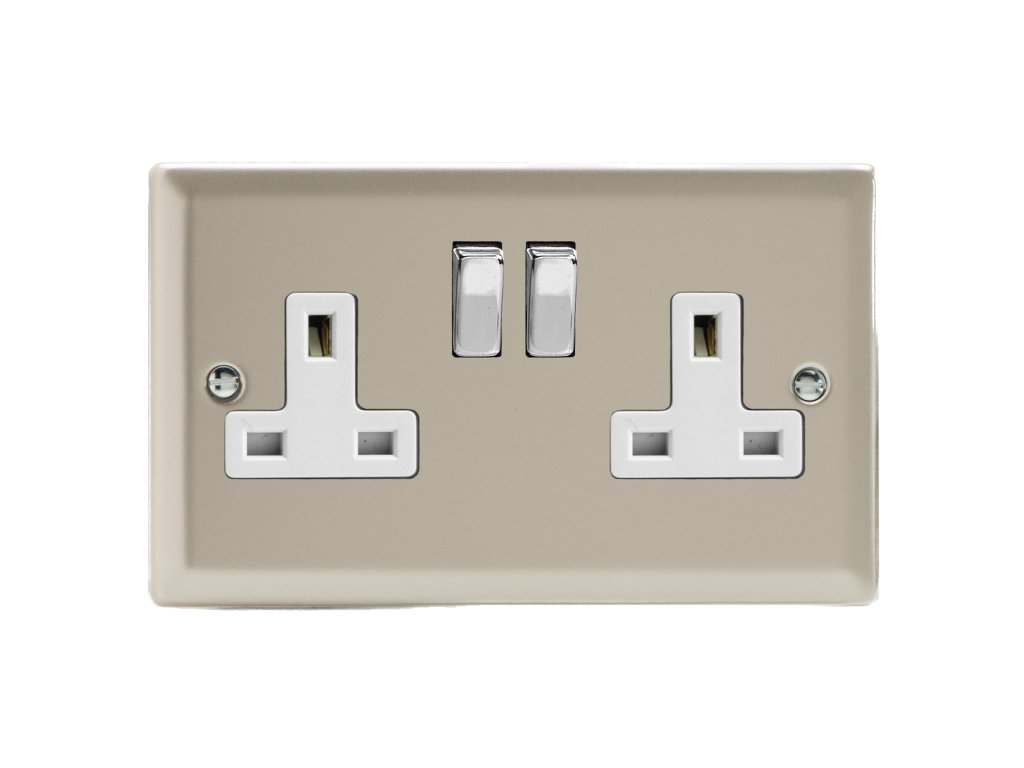 Síová zásuvka MAINS SOCKET - 2-modulový 13A 2-pólový britská zásuvka KLASICKÉ - satén / bílá