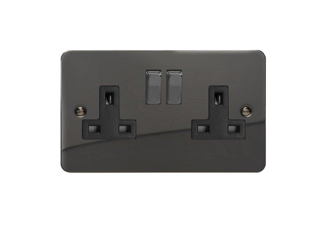 Síová zásuvka MAINS SOCKET - 2-modulový 13A 2-pólový britská zásuvka ULTRAPLOCHÉ - èerné (lesklé) iridium / èerné (lesklé) iridium