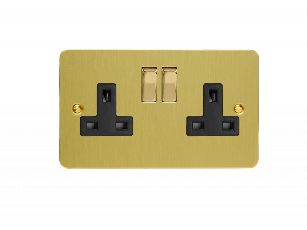 Síová zásuvka MAINS SOCKET - 2-modulový 13A 2-pólový britská zásuvka ULTRAPLOCHÉ - kartáèovaná mosaz / èerná