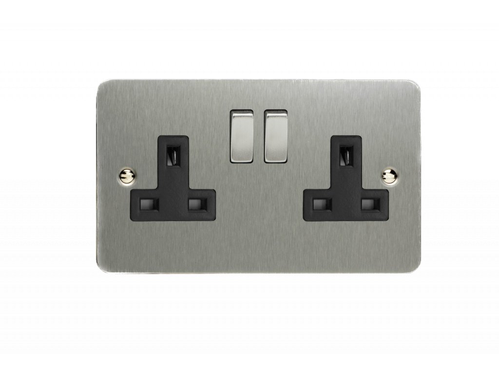 Síová zásuvka MAINS SOCKET - 2-modulový 13A 2-pólový britská zásuvka ULTRAPLOCHÉ - kartáèovaná ocel / èerná